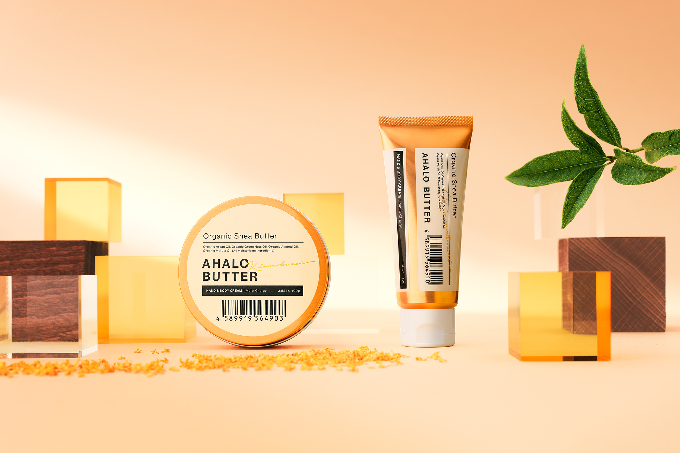 ヘアケアブランド『AHALO BUTTER(アハロバター)』。期間限定販売アイテムの金木犀シリーズのリリースに伴い、限定パッケージ・メインビジュアルのアートディレクション・デザインを担当いたしました。