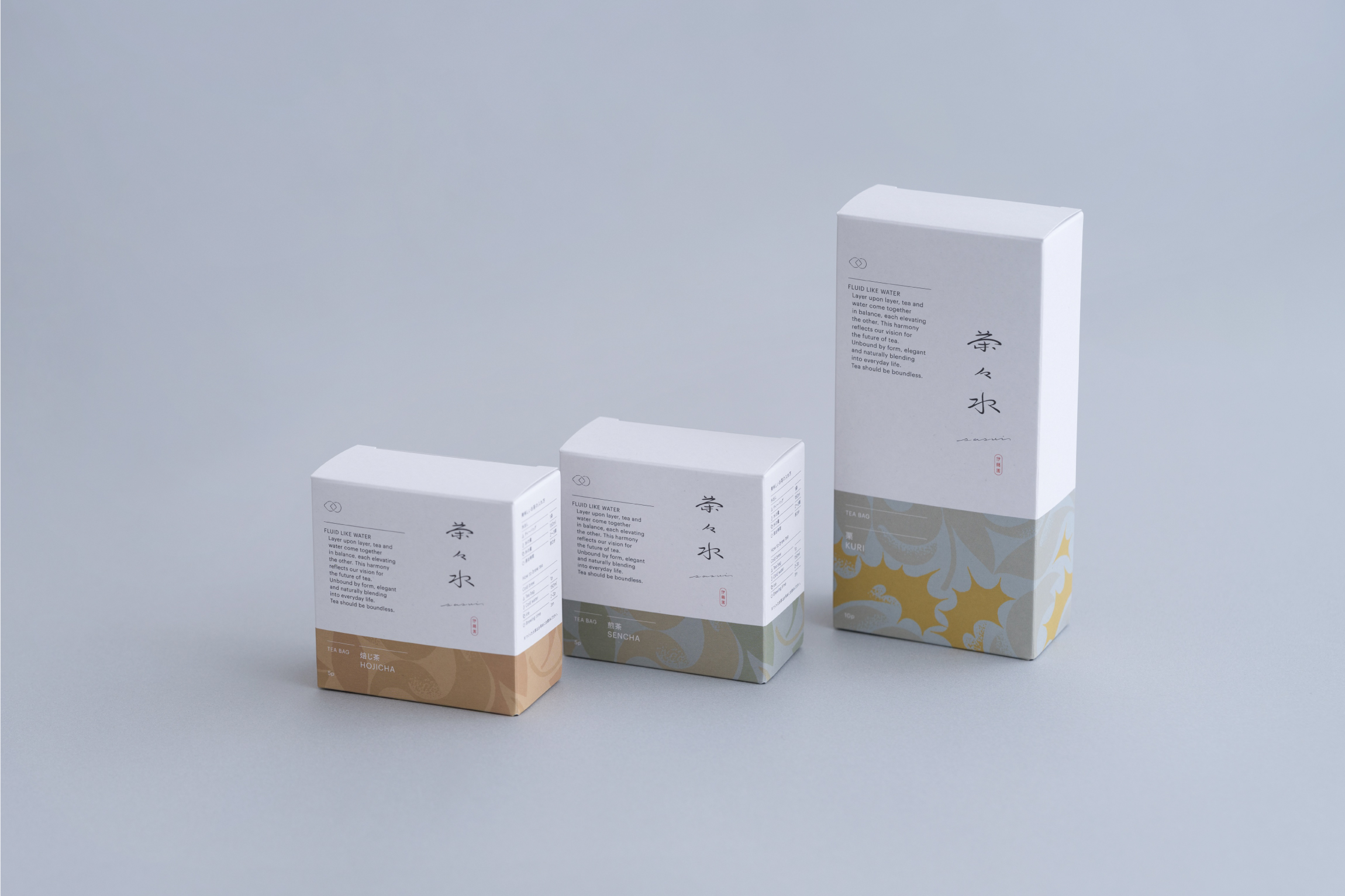 日本のお茶文化を発信する伊藤園のアンテナショップ『茶々水 SASUI 伊藤園』のロゴ、ビジュアル、パッケージ、店舗ツールのデザインを担当いたしました。